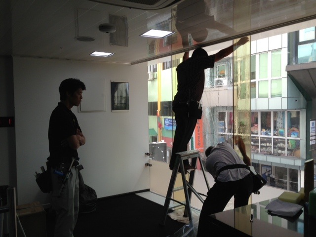 仕事の流れは、まず先方に出向いてフィルムを必要とする目的を伺い、現場を実際に見て確認します。大まかな費用やフィルムの効果などを説明し、事務所に帰ってから見積を作り、注文を頂いた後には職人さんへの説明を行ったり、私も現場へ出向いて作業をすることもあります。